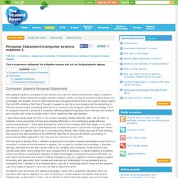 Personal Statement Graduate Application Throughout my career I have been keen to expand my knowledge of computer science and software engineering subjects including programming languages C, C++, resources, wherein the network is both the computer and the database. ... View Full Source
